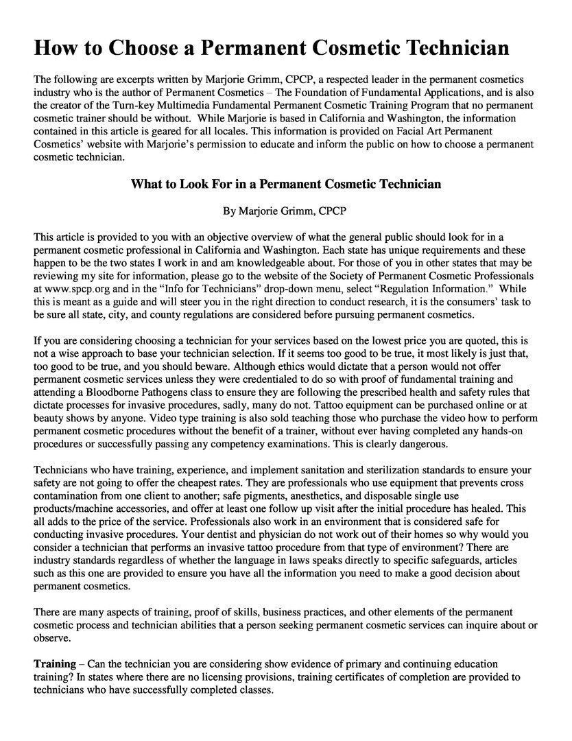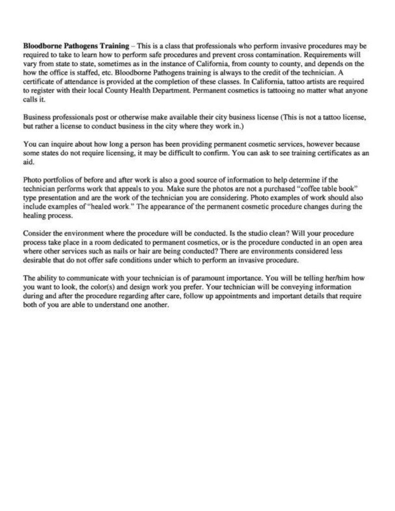 - Certified Technician with both the Society of Permanent Cosmetic Professionals and the American Academy of Micropigmentation